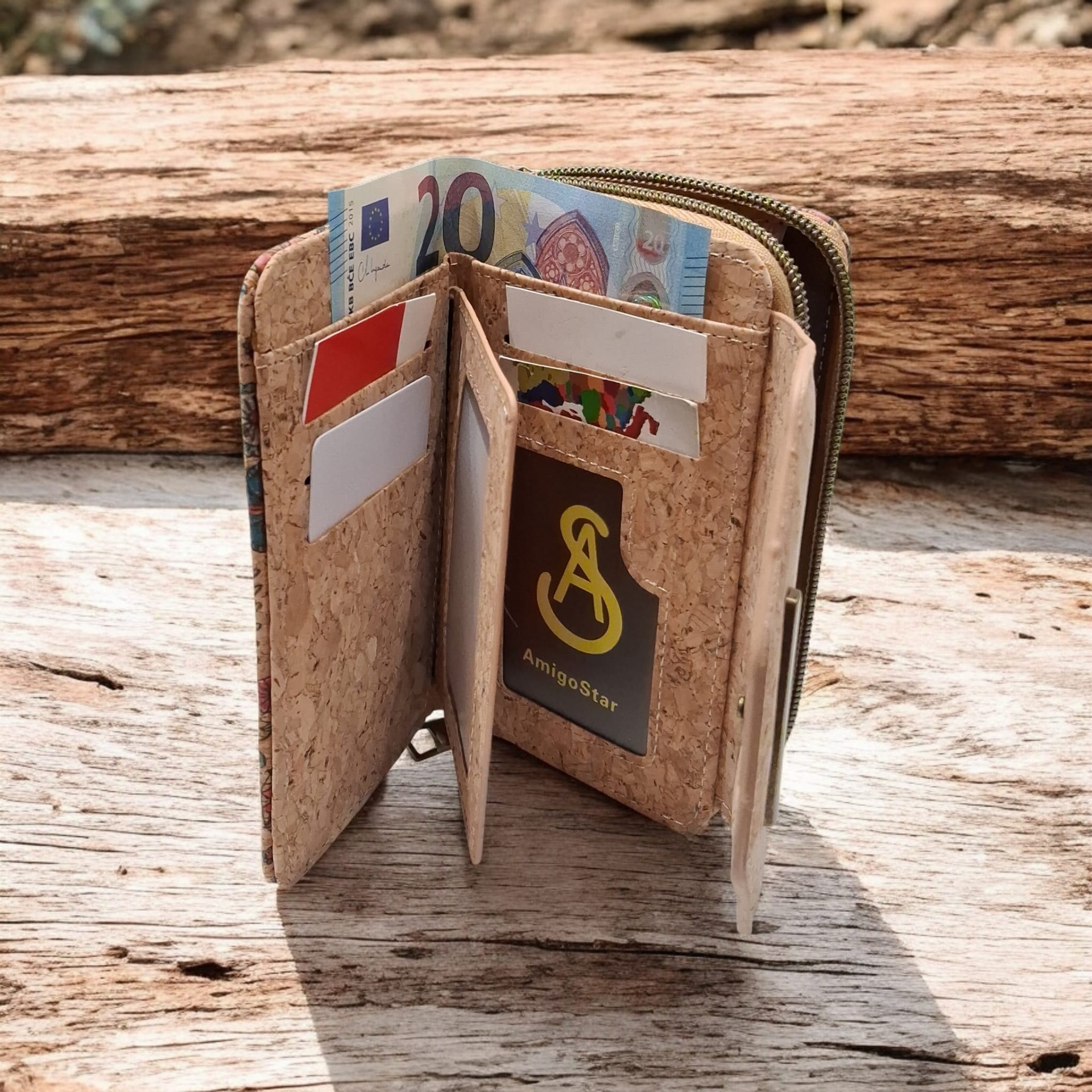 Realizzato in sughero naturale, un materiale resistente all'acqua, alle macchie e all'usura, questo portafoglio è anche una scelta sostenibile e cruelty-free. La texture morbida al tatto e l'aspetto raffinato lo rendono perfetto sia per l'uso quotidiano sia come idea regalo originale e di stile.
