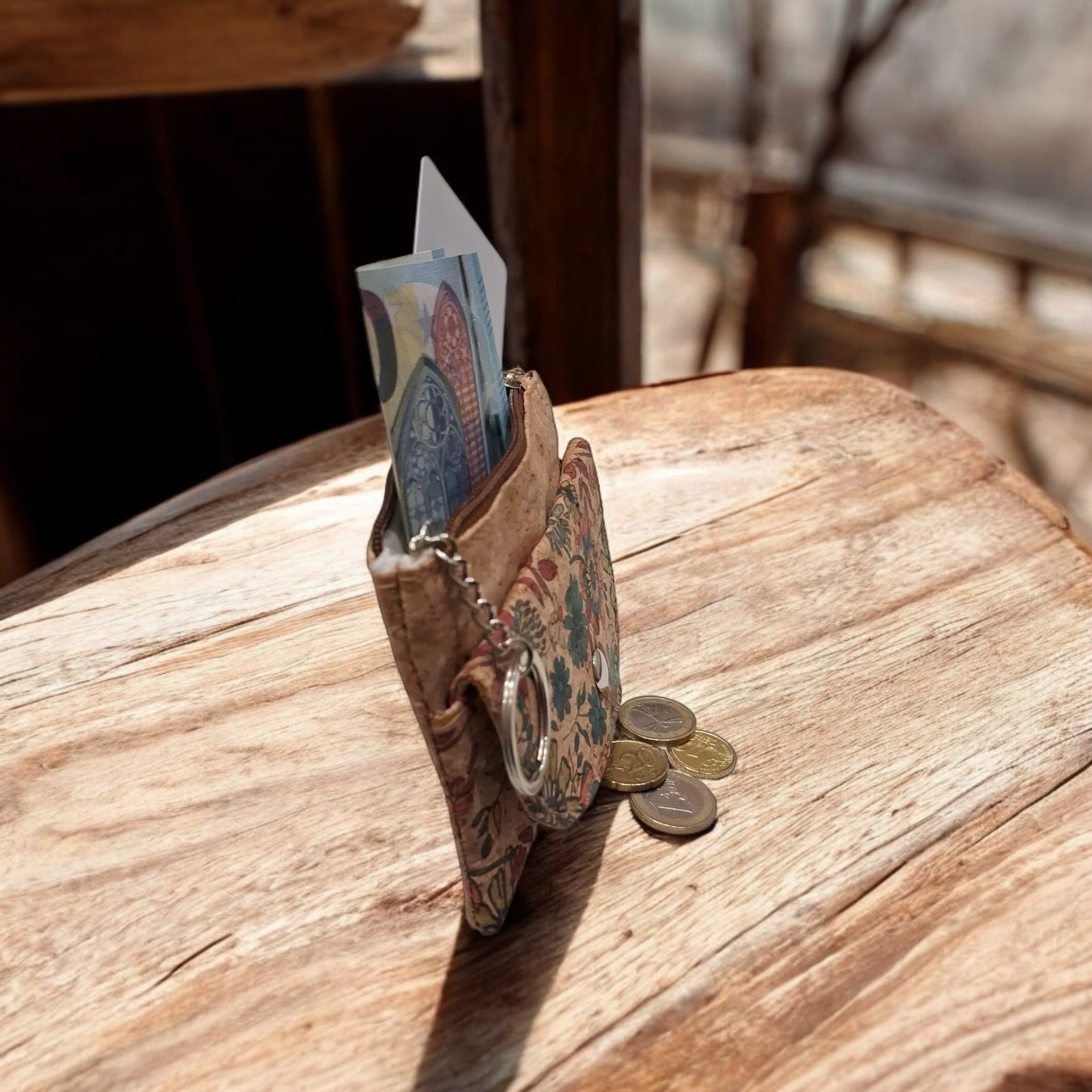 Realizzato in sughero naturale, un materiale resistente all'acqua, alle macchie e all'usura, questo portamonete unisce funzionalità, leggerezza ed estetica. Il sughero è un materiale eco-sostenibile, morbido al tatto, duraturo, perfetto per chi desidera uno stile di vita più rispettoso dell'ambiente.