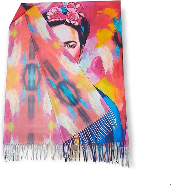 Sciarpa multicolor e disegno astratto bifronte " Frida Khalo "