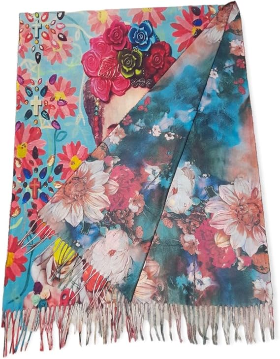 Sciarpa rose colorate bifronte " Frida Khalo "