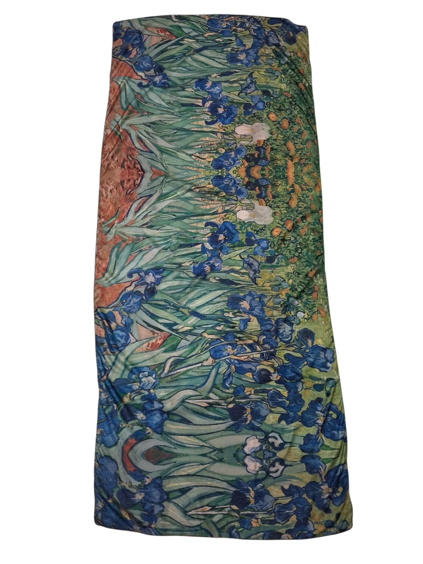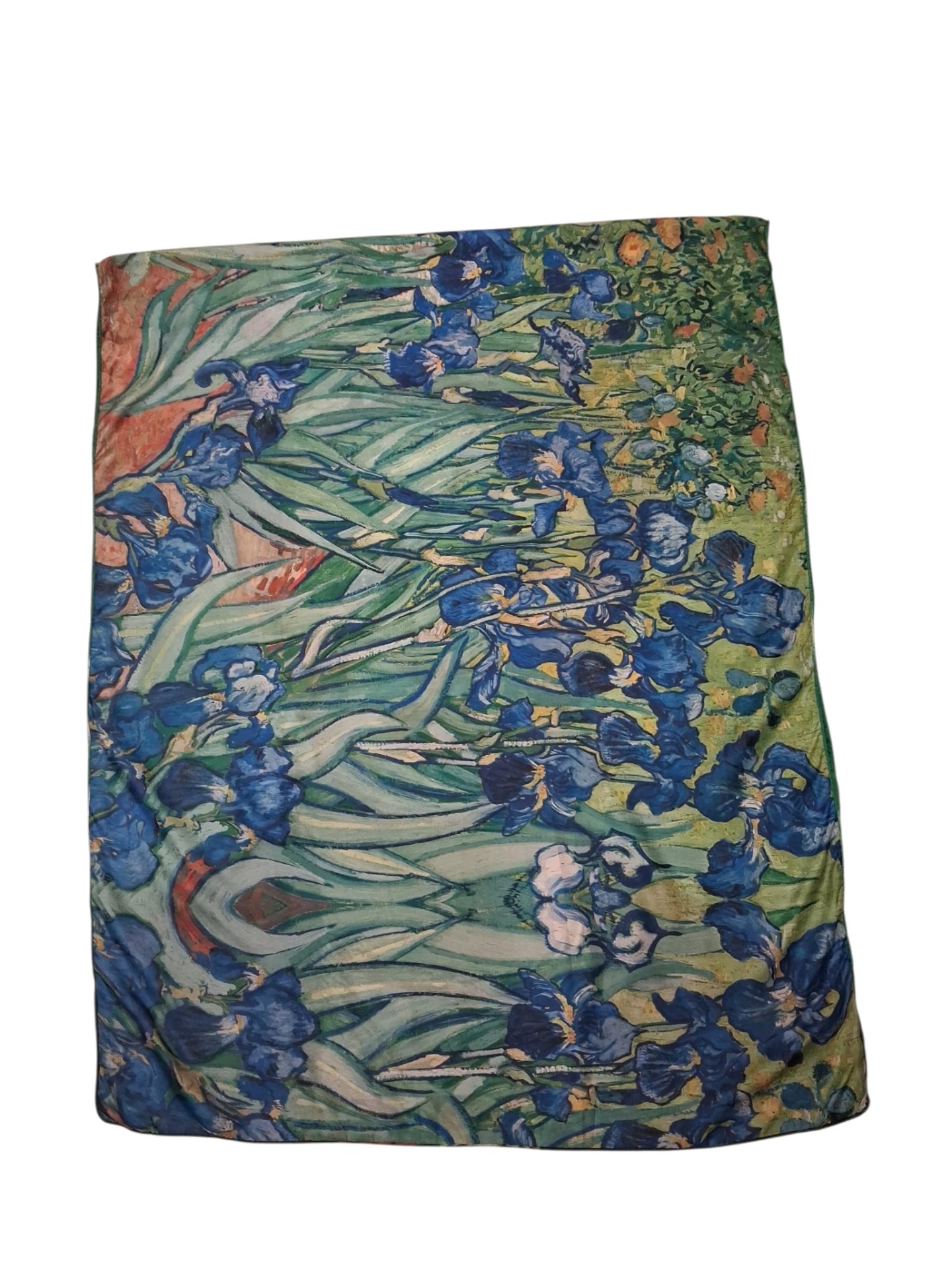 DESIGN: Lo scialle e' bifronte formato da 2 dipinti di artisti famosi . In completo stile impressionista i colori sembrano condurre una vita propria, dissolvendo quasi le forme del motivo. Lo scialle di seta 30% e viscosa ( fibra naturale ) al 70% renderà incantevole la vita quotidiana di chi lo indossa