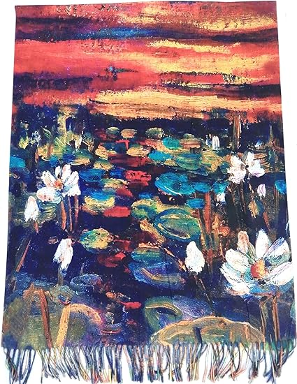 Sciarpa ninfee rosse e disegni astratti bifronte " kandisky "