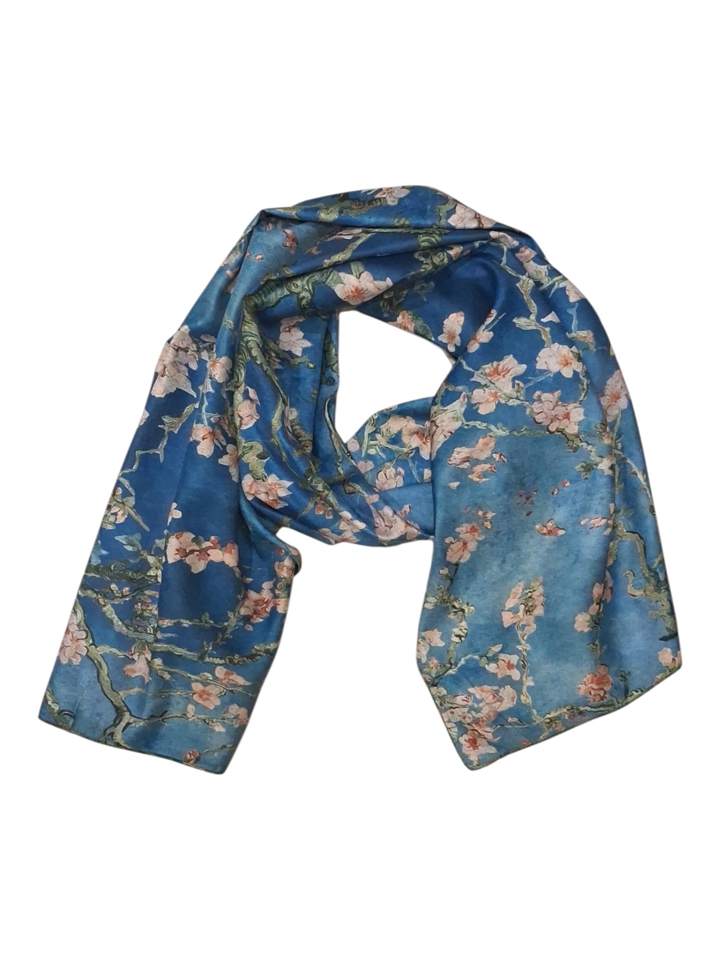 Sciarpa seta mandorlo e iris bifronte " Van Gogh "