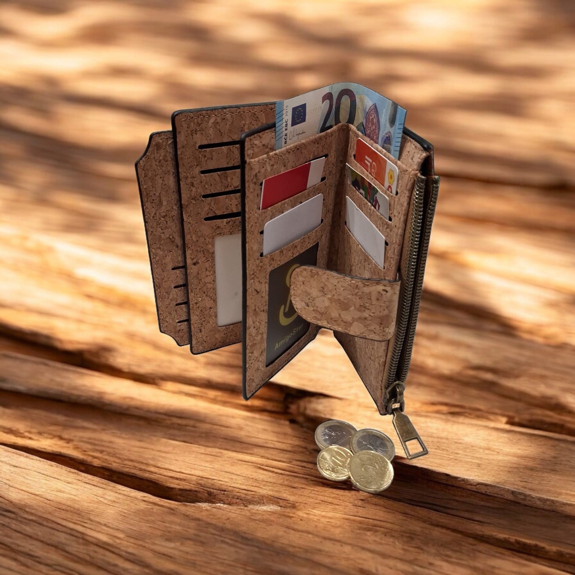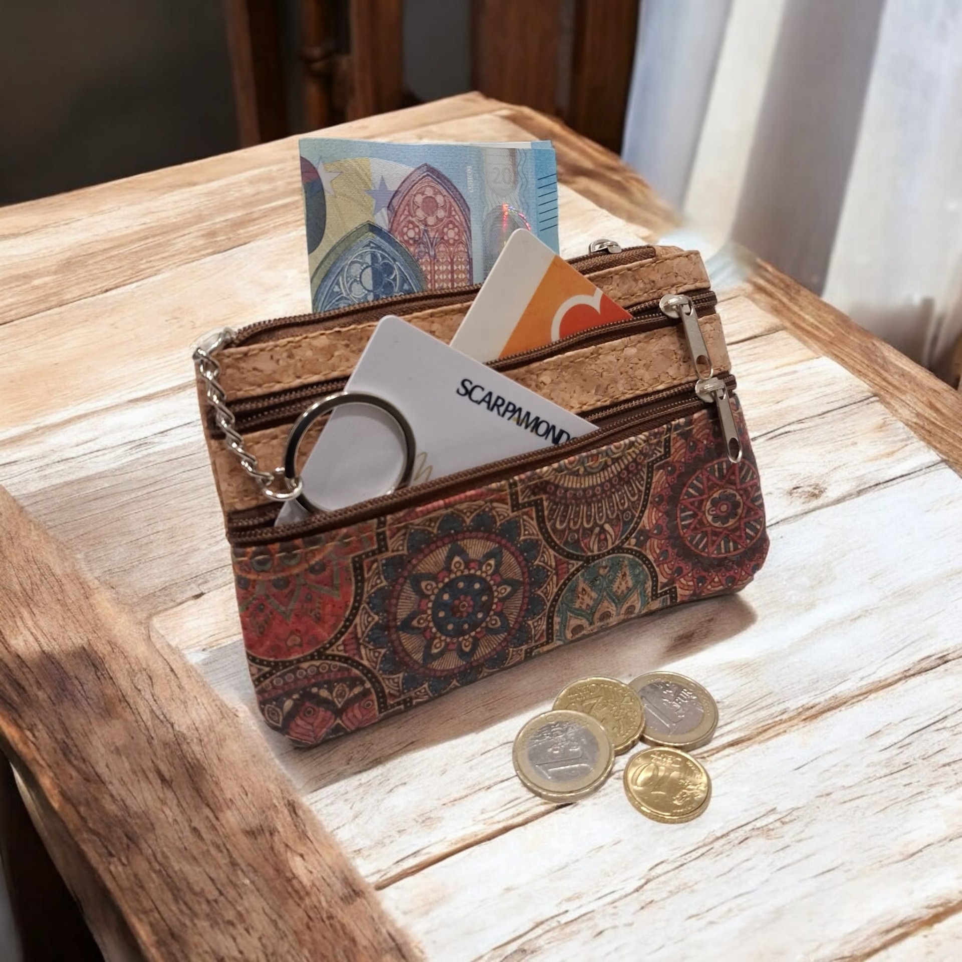 Scopri il portamonete in sughero naturale Tanzi Fashion, un accessorio compatto, leggero ed elegante, ideale per accompagnarti nella vita di tutti i giorni. Il design con doppia cerniera offre scomparti separati che permettono una gestione ordinata di monete, banconote, carte, chiavi e piccoli oggetti. Le zip scorrono in modo fluido, garantendo praticità e sicurezza in ogni situazione.