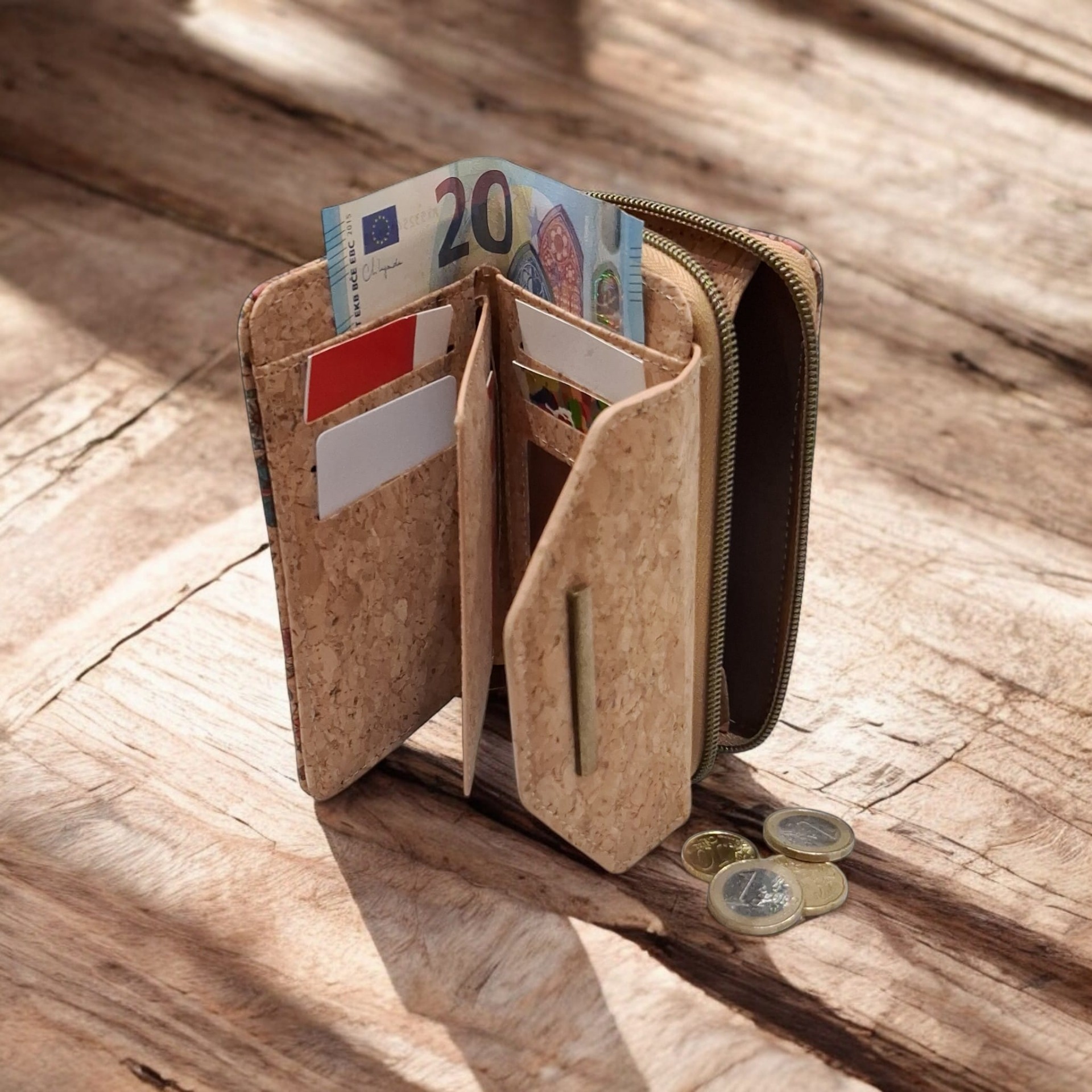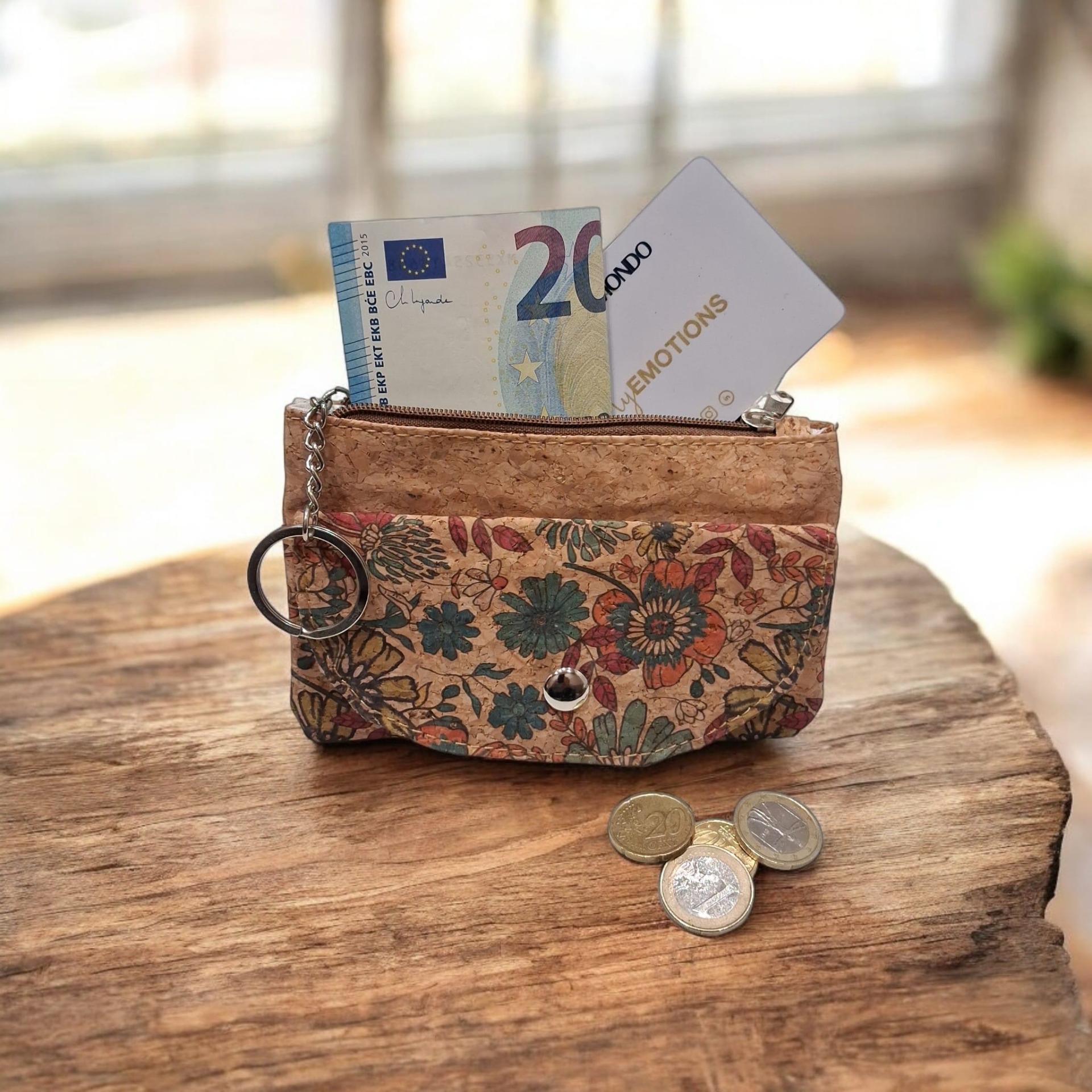 Realizzato in sughero naturale, un materiale resistente all'acqua, alle macchie e all'usura, questo portamonete è anche una scelta sostenibile e cruelty-free. La texture morbida al tatto e l'aspetto raffinato lo rendono perfetto sia per l'uso quotidiano sia come idea regalo originale e di stile.